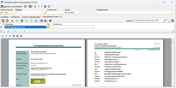 Zu Aufträgen und Rechnungen können Anlagen aufgenommen werden. Im File-System werden diese im Projektverzeichnis, in Unterordnern je Belegart, abgelegt.