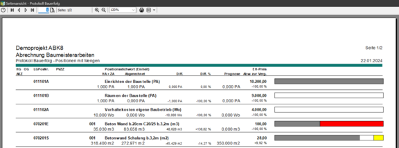 Bauerfolg mit mehr Information Der neue Report für den Bauerfolg bietet im Querformat mehr Informationen, so kann beispielsweise auch ein Änderungsverlauf angedruckt werden.