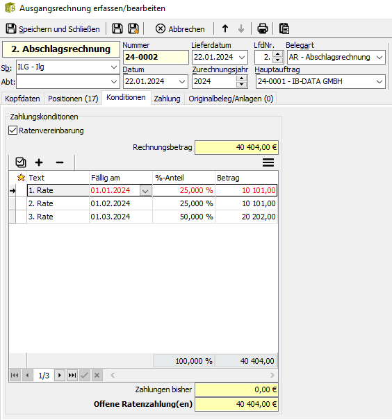 Ratenvereinbarung Bei Ausgangsrechnungen gibt es eine neue Zahlungsbedingung "Ratenvereinbarung".